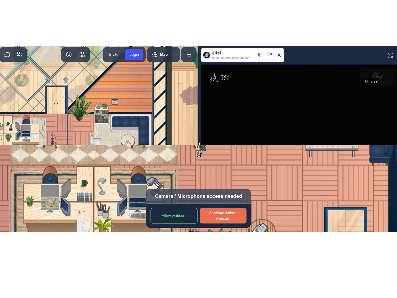 As part of the platform's UI/UX overhaul, I worked on the front-end and back-end integration of new features aimed at improving the visual and interactive experience of WorkAdventure. My responsibilities included implementing camera management, iframe-based cowebsite integration, and reactive popup systems—all in close collaboration with the product designer.